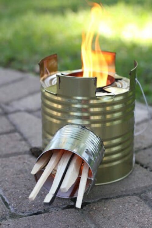 A meleg ételekhez nyilván szükség lesz egy alkoholos égőre, tea-mécsesre, kis gázrózsára (a gázpalackot se felejtsük el), de építhetünk egy mini tűzhelyet konzervdobozból, amihez tüzelőanyagnak egy kis kupac száraz gally is elég.